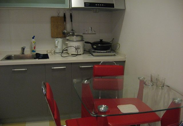 配套设施:数字电视,物业供热水,冰箱,热水壶,1.5米双人床,沙发,空调,全自动洗衣机,地下收费停车位,电梯,抽油烟机,电磁炉,全套厨具(自备食材可做饭)。